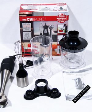 - L’appareil contient : Poussoir / Lame / Tube récepteur d’aliments / Joint d’étanchéité / Bloc moteur muni d’un bouton marche arrêt..