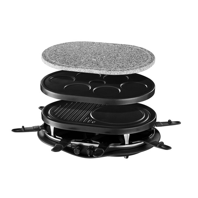 Russell Hobbs Raclette Quatuor 4 En 1 – 8 Personnes, Grill / Pierre À Griller / Multi-Crêpes / Grill-Crêpes, 1 200 W