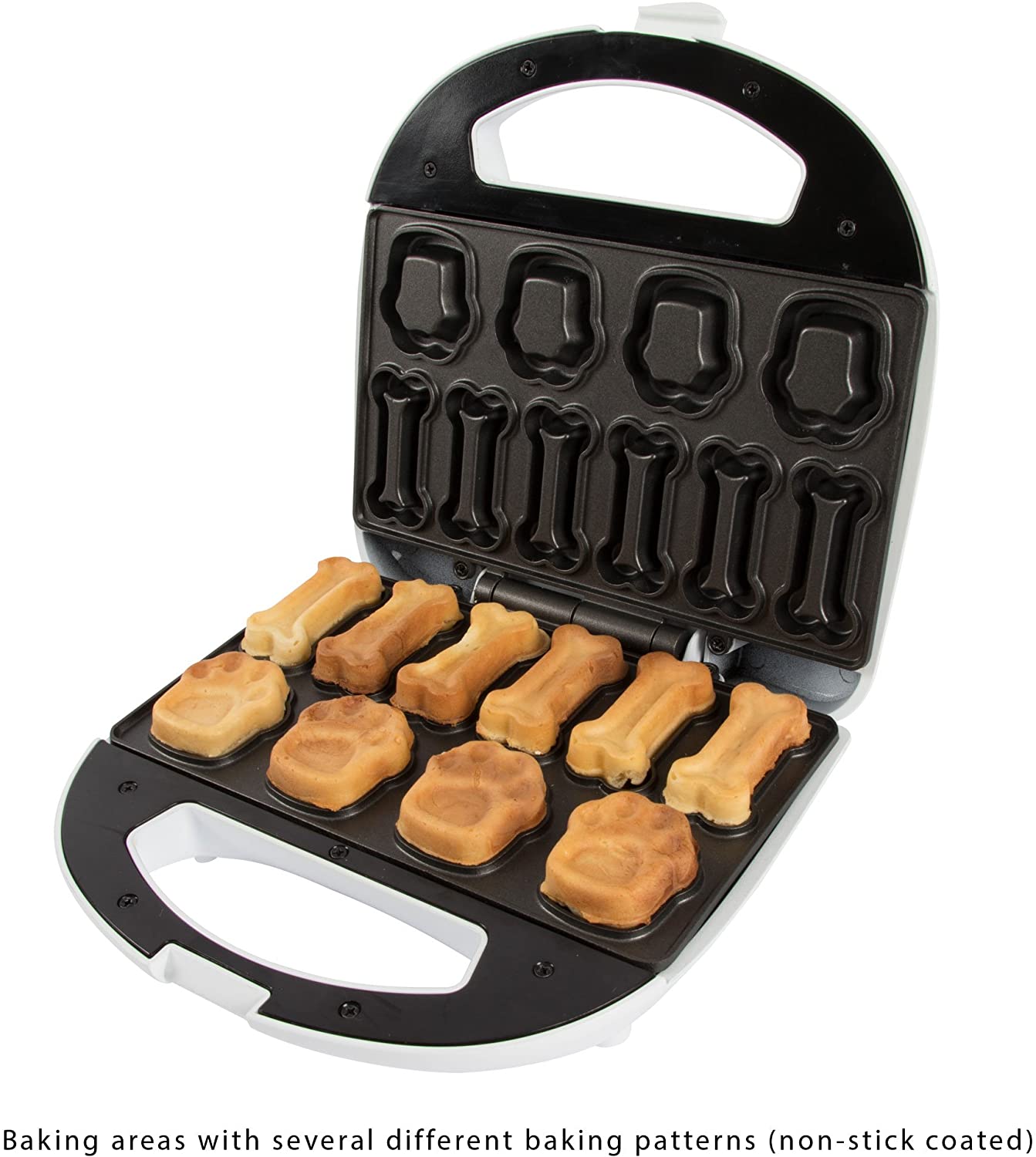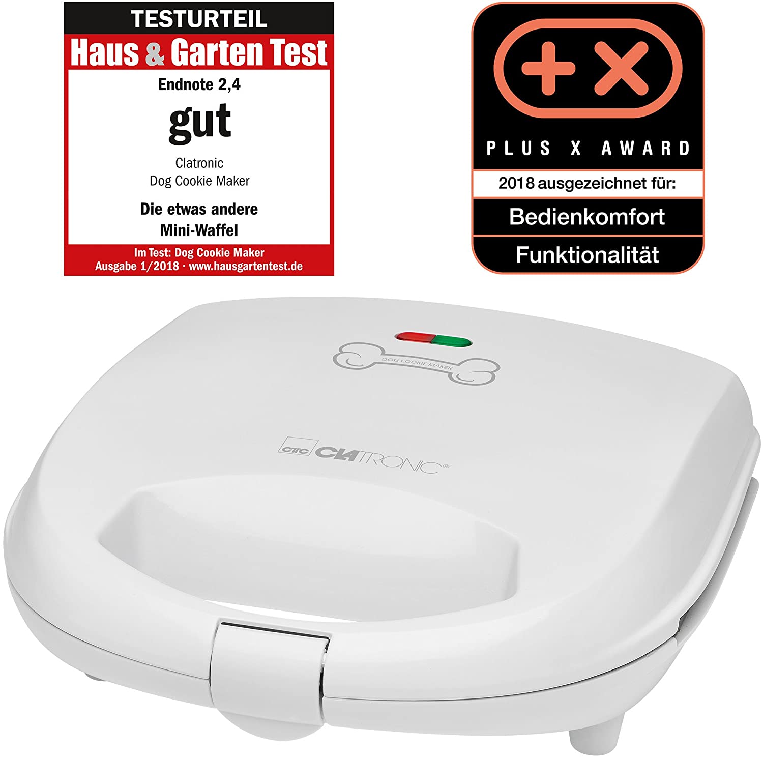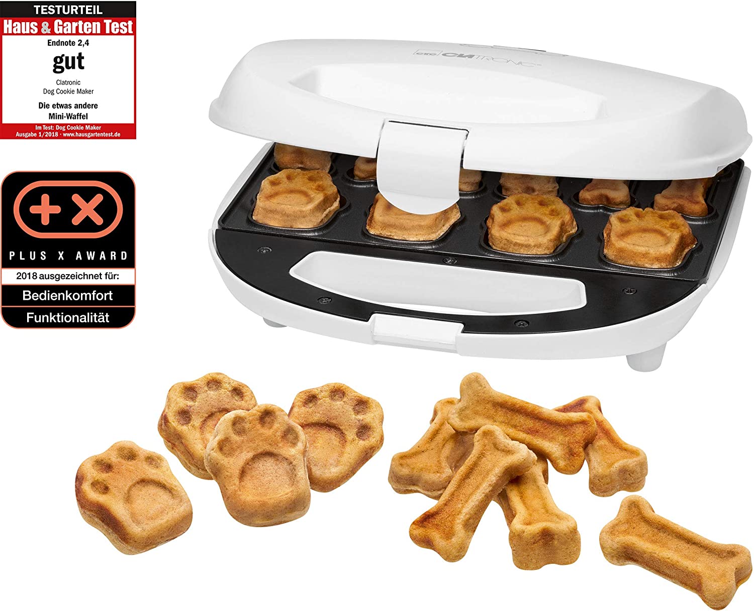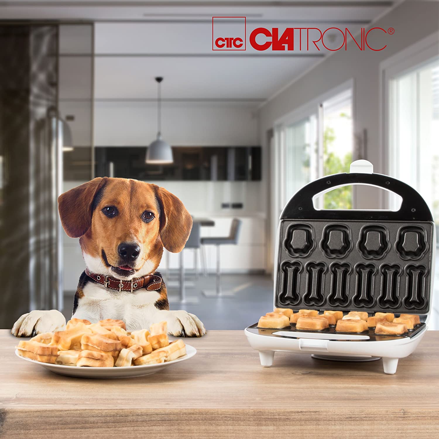 Clatronic Dog Cookie Maker Machine à pâtisserie avec suggestions de recettes et surfaces de cuisson avec différents motifs de pâtisserie pour chien Blanc