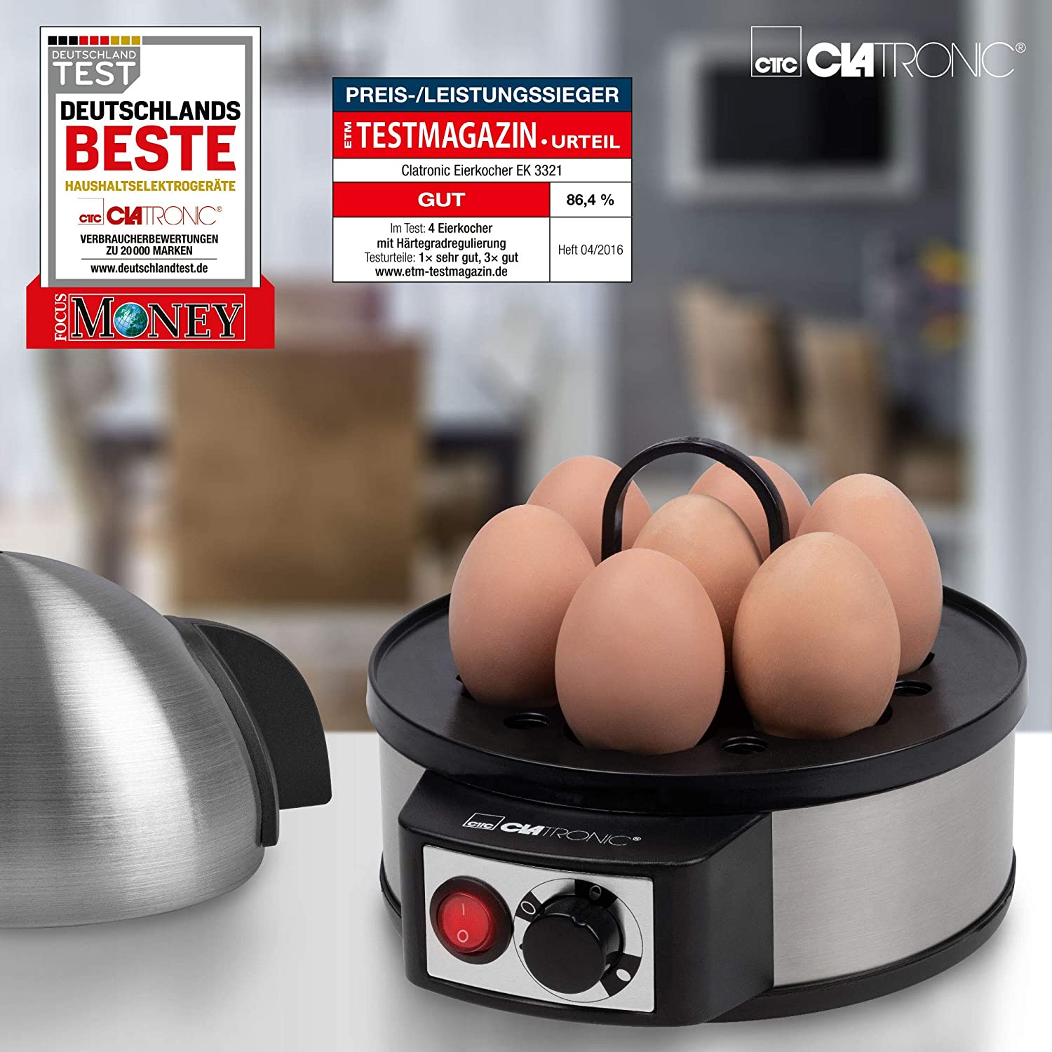 Clatronic Eds Coquetier 7 Oeufs Acier Inox Mesurer Bécher