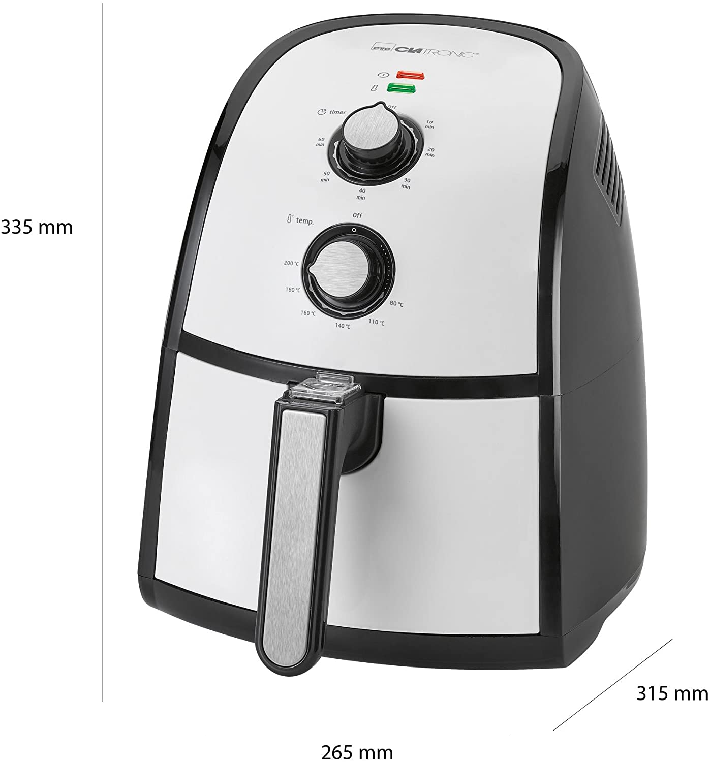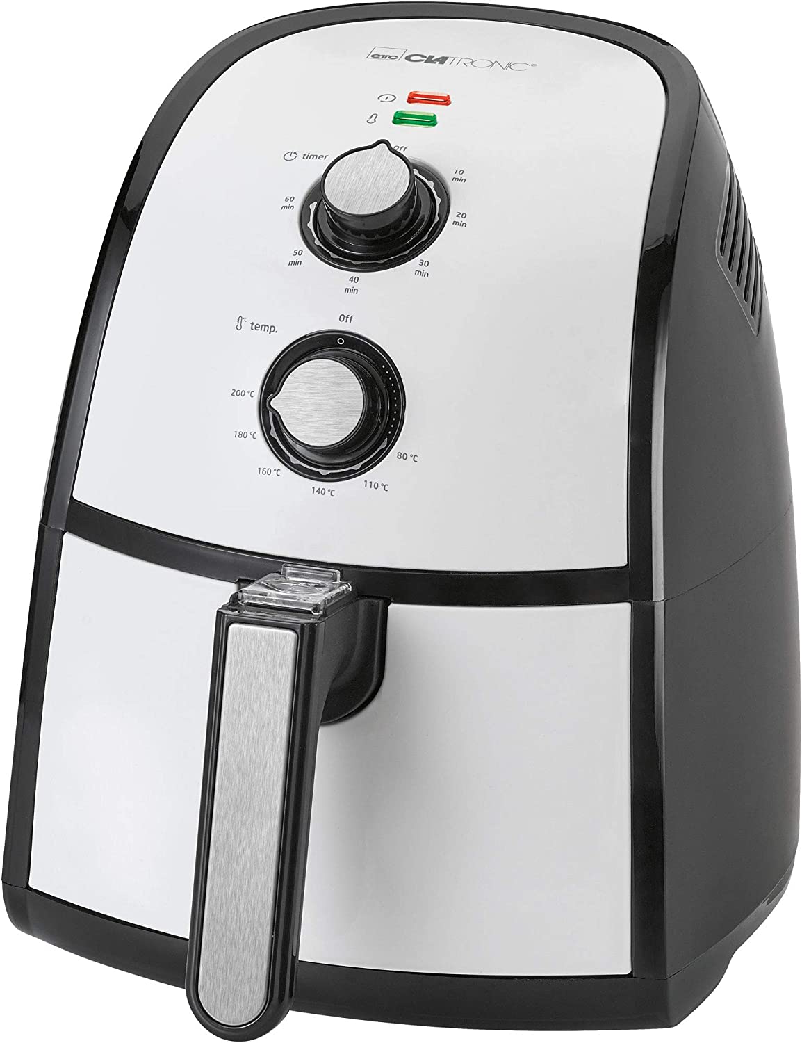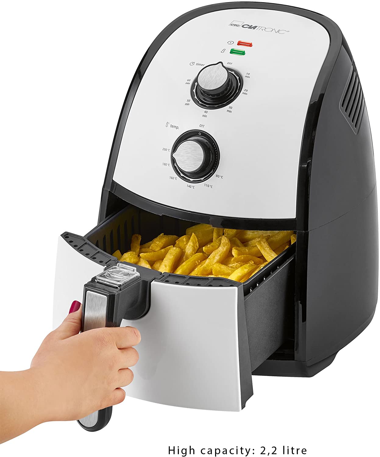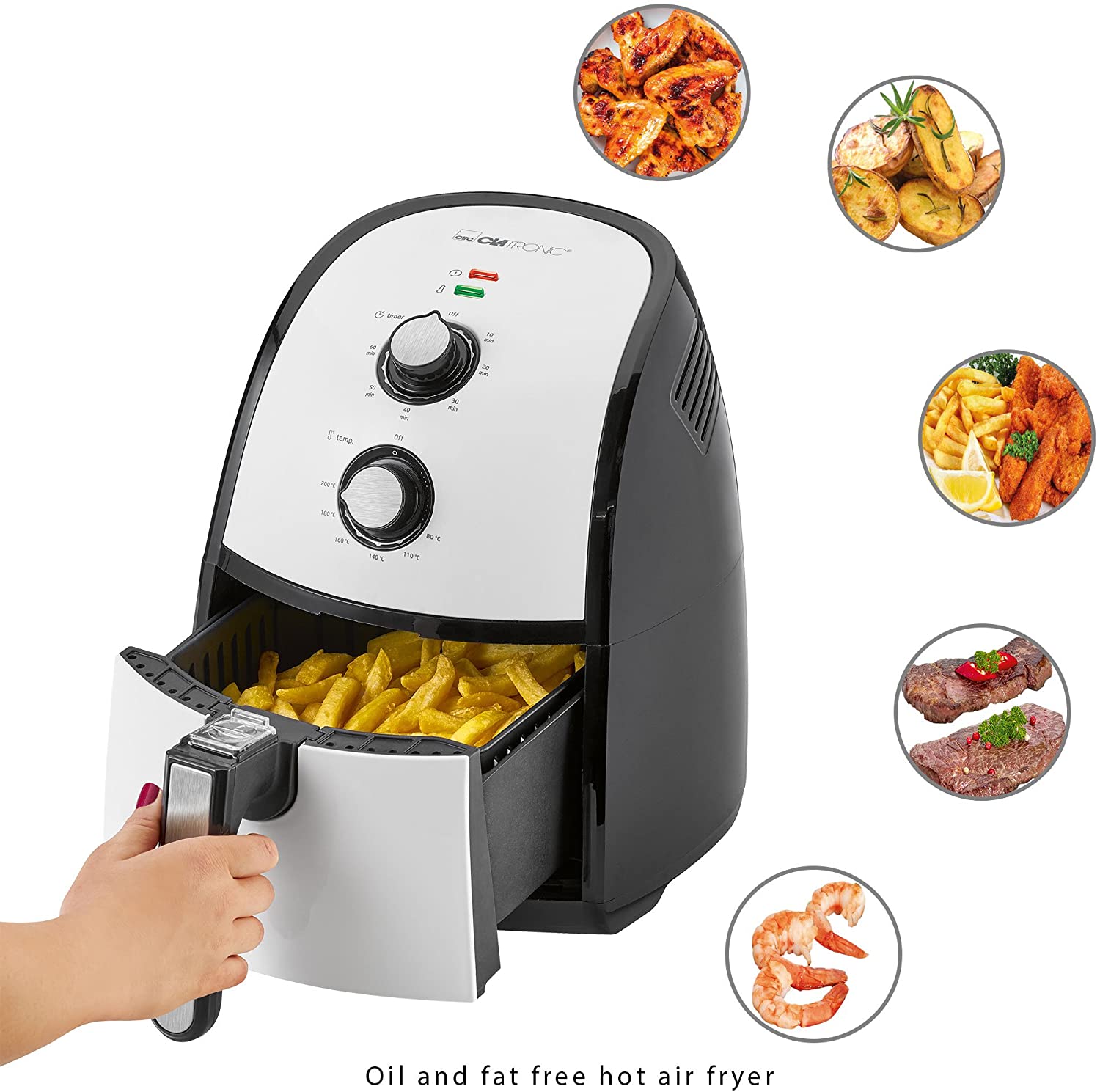 Clatronic FR 3667 H à air chaud Friteuse 2,2 L Contenance, thermostat réglable en continu, minuterie, 1500 W, noir/blanc