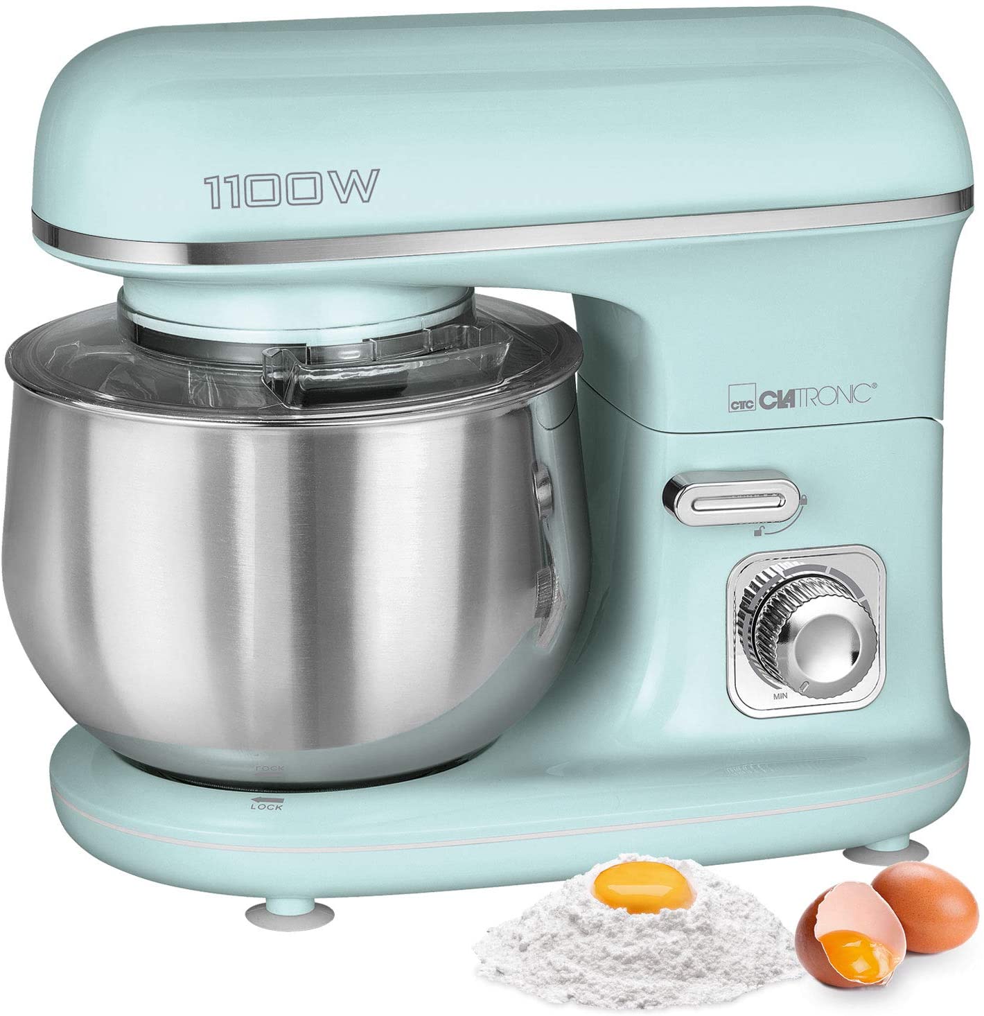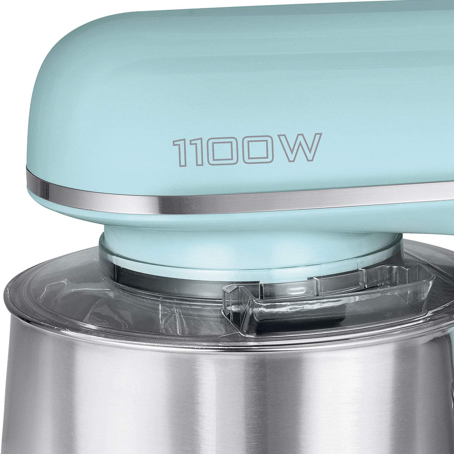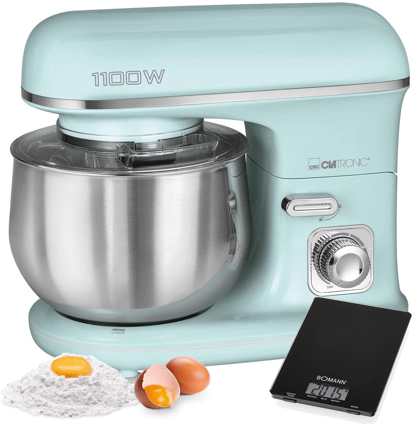 Clatronic KM 3711 – robot mixeur Batteur Pâtisserie capacité de 5 litres, vitesse réglable électronique, 1100 W Série Rock & rétro Style Vintage, Vert menthe Pastel + Balance Cuisine