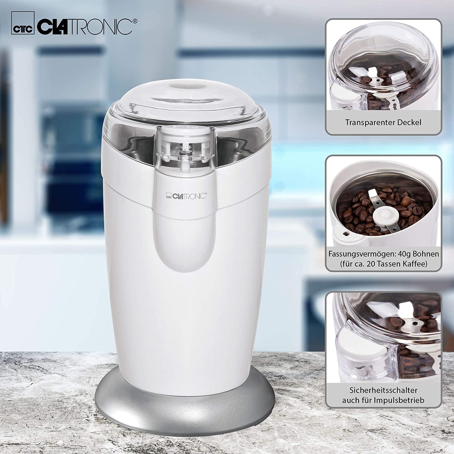 Clatronic KSW 3306 Moulin à Café Blanc [Classe énergétique A]