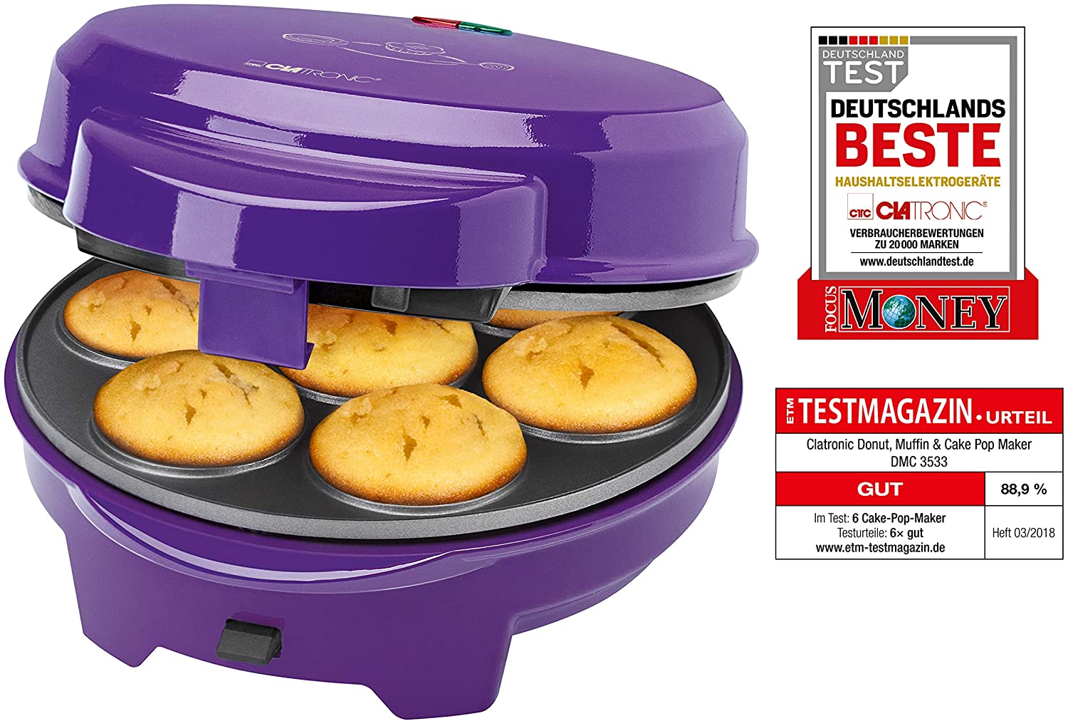 Clatronic Machine à beignets, muffin et gateaux (cake pop) Lila