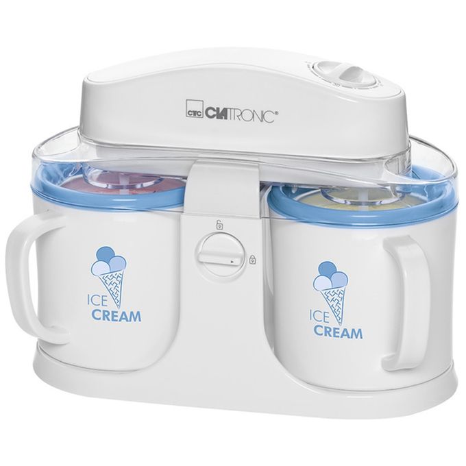 Machine à glace ICM 3650 Clatronic (Blanc). Machine à glace pour préparer des sorbets. glaces ou yahourts glacés.Deux doubles compartiment à glace. avec un réservoir froid adapté pour une consommation immédiate.Couvercle transparent avec deux ouvertures.Pour un maximum de 2x 500ml de crème glacée.Temps de préparation 15-30 minutes.Minuteur inclus (0-45 minutes).Mixeur et moteur amovible pour un nettoyage facile.Suggestions de recettes incluses.Excellente stabilité grâce à ses pieds en caoutchouc.220-240 V. 50 Hz. 12 W