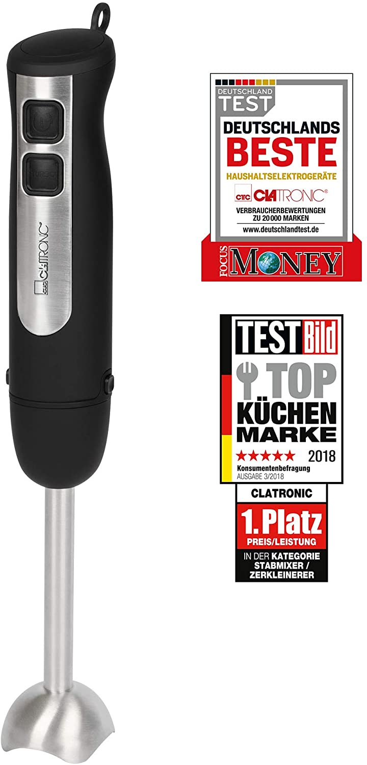 Clatronic Mixeur plongeant avec manche ergonomique Moteur 800 W 800 W Amovible Acier inoxydable Argenté/noir