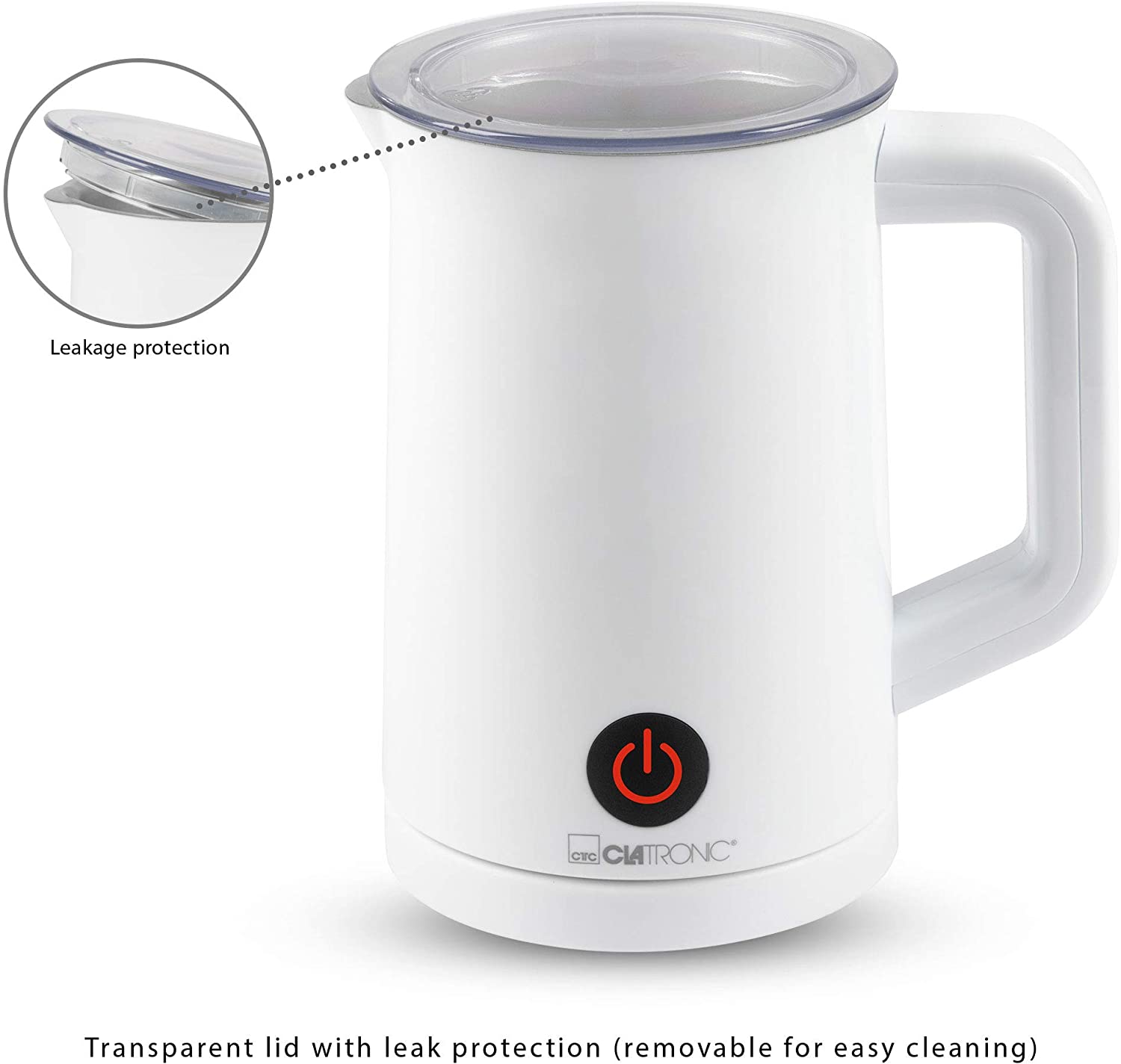 Clatronic Mousseur à lait Éleélectroniques en quelques secondes avec couvercle anti-éclaboussures Blanc