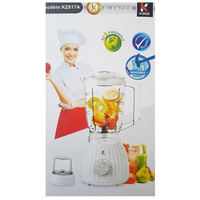 KENZ Blender incassable 2en 1 avec moulin – 2 vitesses – 1.5L – Puissance 300 W BLANC
