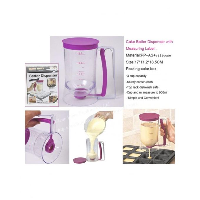 Ce doseur / verseur de pâte à gâteau est parfait pour les petits gâteaux ou les crêpes. Facile à remplie il vous permettra de bien doser vos quantité et les verser dans les moules ou les d’autres récipients avec précision sans que ça ne déborde. Le verseur est gradué de 100 à 900 ml pour vérifier d’un simple coup d’oeil la contenance de votre préparation