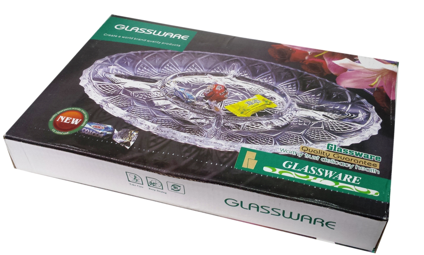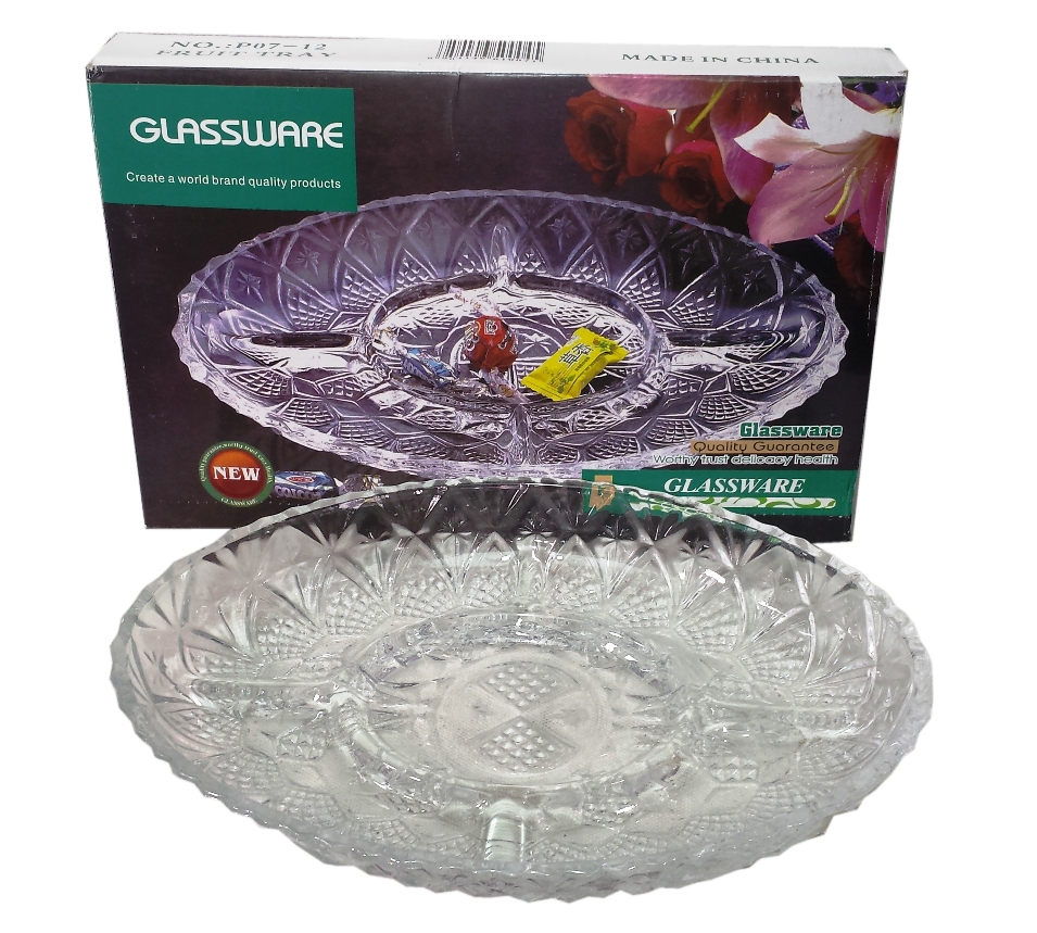 Plat en verre de bombons à 5 compartiments , en verre ou cristal taillé.