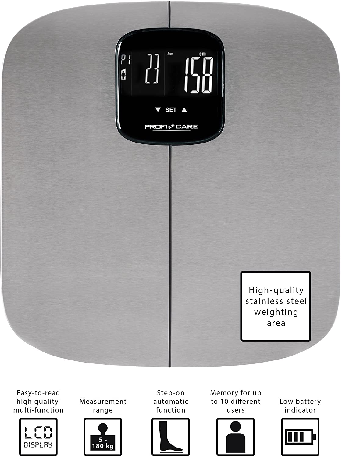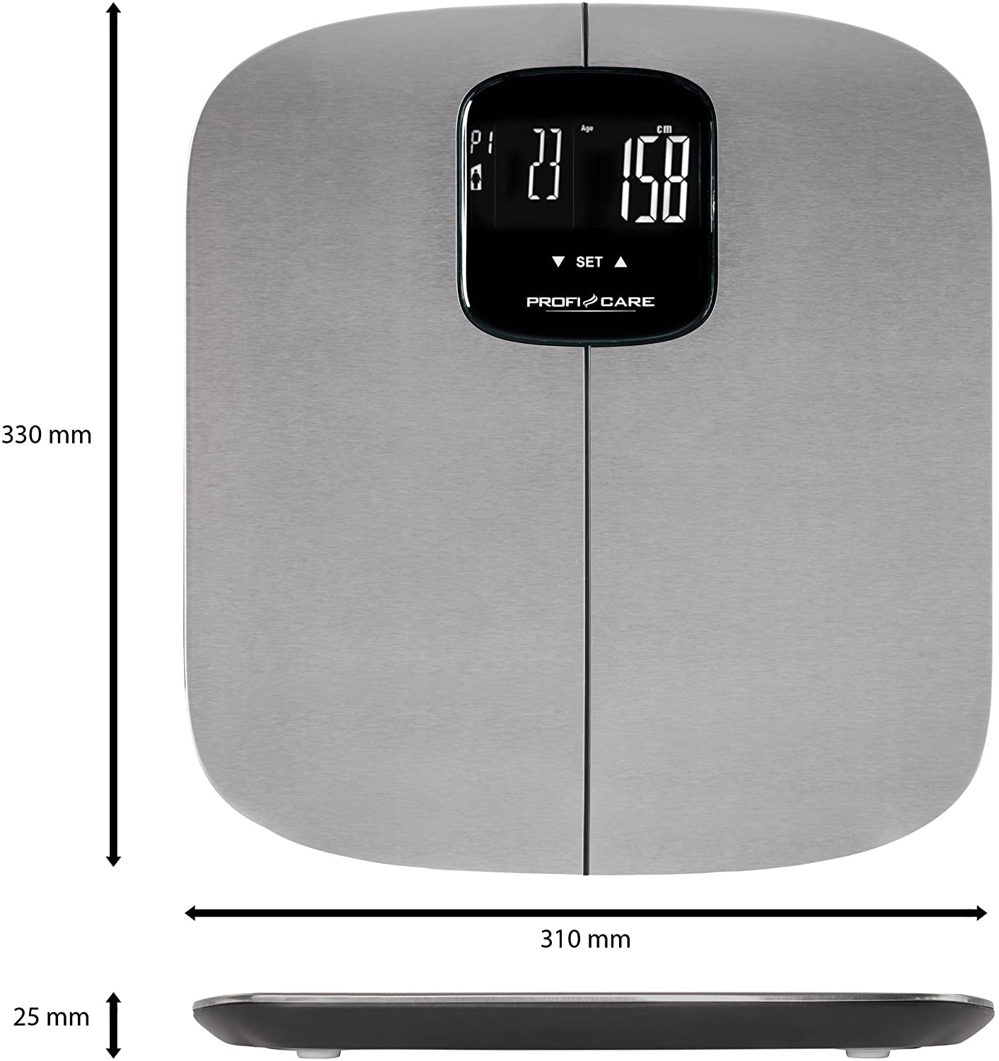 Professional Care 330060 PC 3006 FA with 7in1 Electronic Stainless Steel Scales for Analysing Weight, Body Fat, Water, Muscle Mass Bone Mass/Calorie Consumption, BMI
