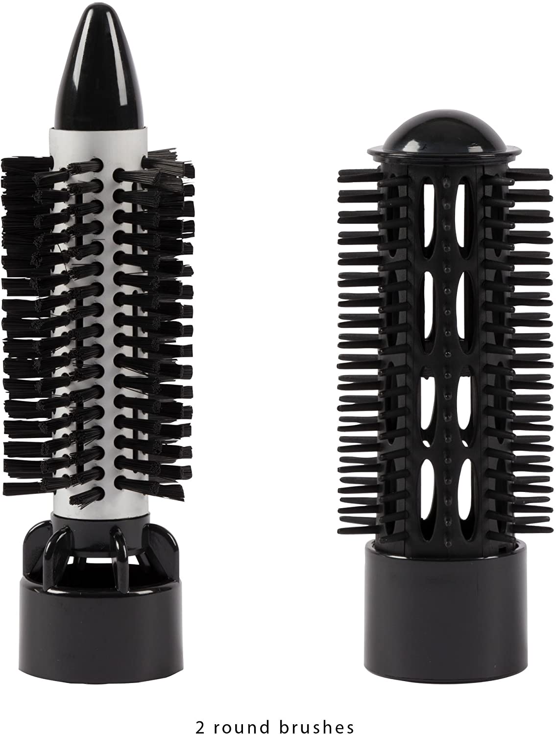 - 2 têtes de brosse interchangeables (pour toutes les longueurs de cheveux et exigences) pour haarschonendes Styling :-1 brosse ronde avec poils grossière (o : env. 25 mm)-1 brosse ronde avec poils lisses (o env. 35 mm)