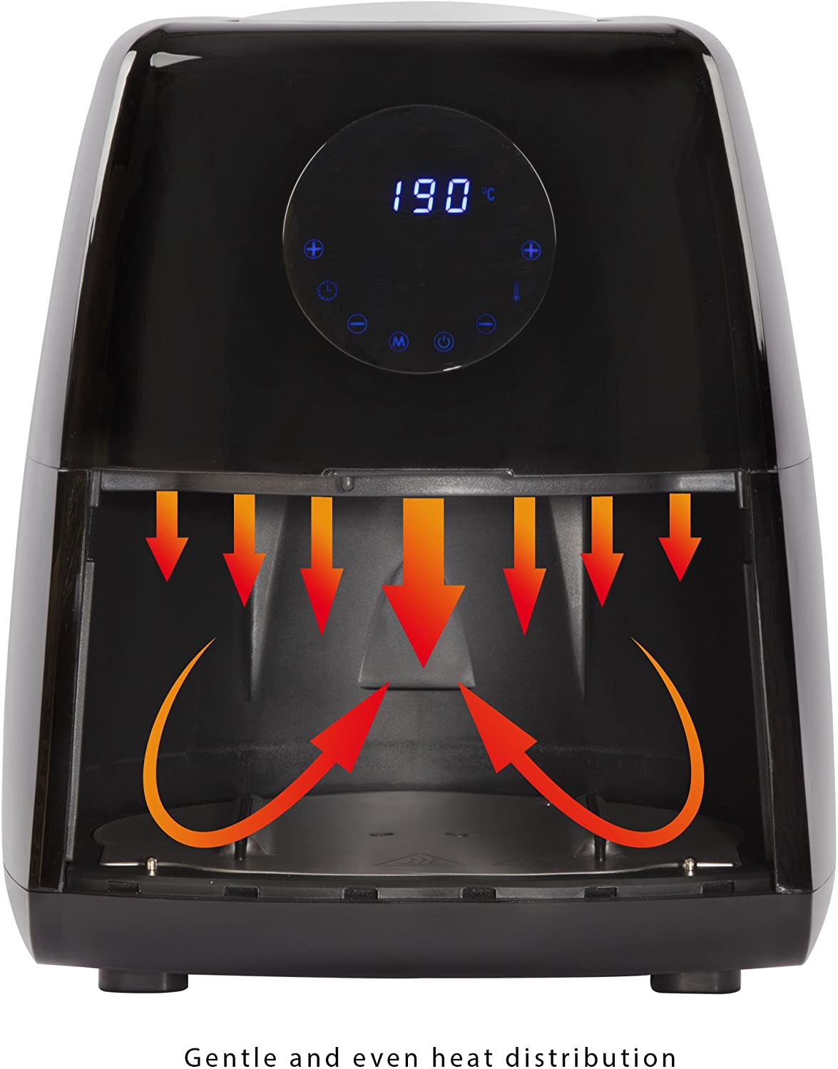 - Thermostat réglable en continu (80 ° C-200 ° C) – Panneau de commandes à affichage LED – 7 programmes de cuisson – Protection contre les surchauffes – 220-240 V, 50/60 Hz, 1500 W
