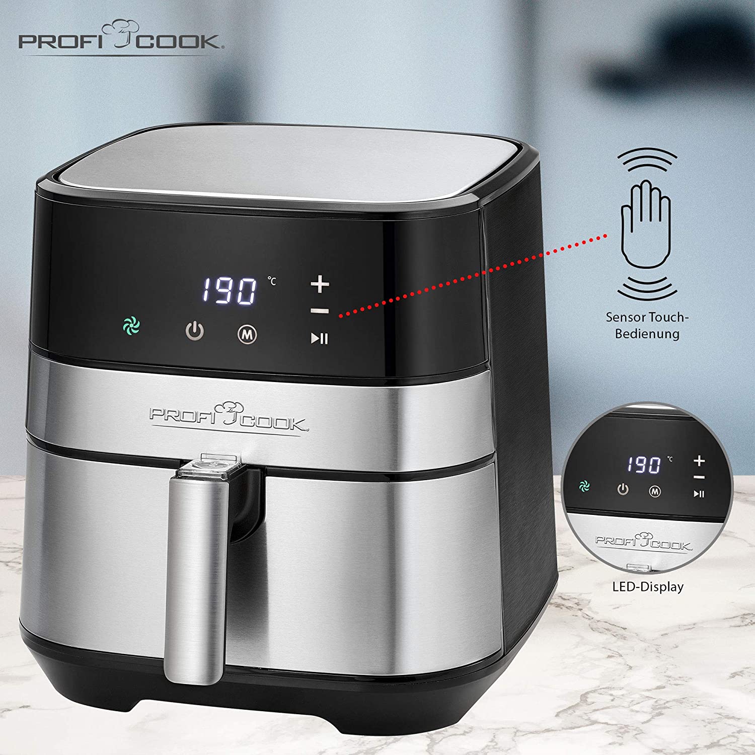 PROFI COOK PC-FR 1177 – Friteuse à air chaud XXL – Sans huile et sans matières grasses – 9 programmes – 5,5 L de capacité – Ecran LED Et touches tactiles – 1700 Watts – Noir