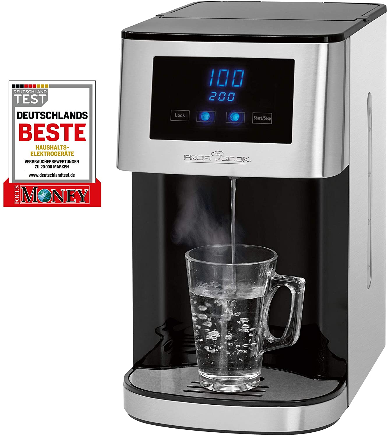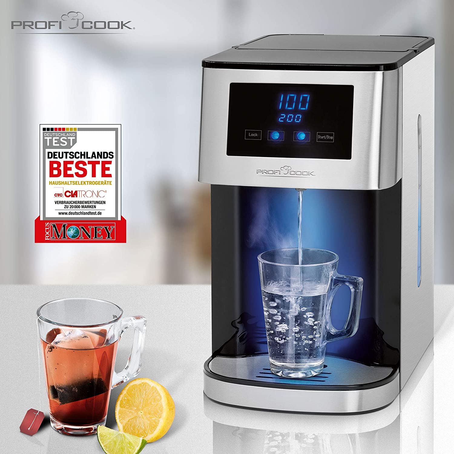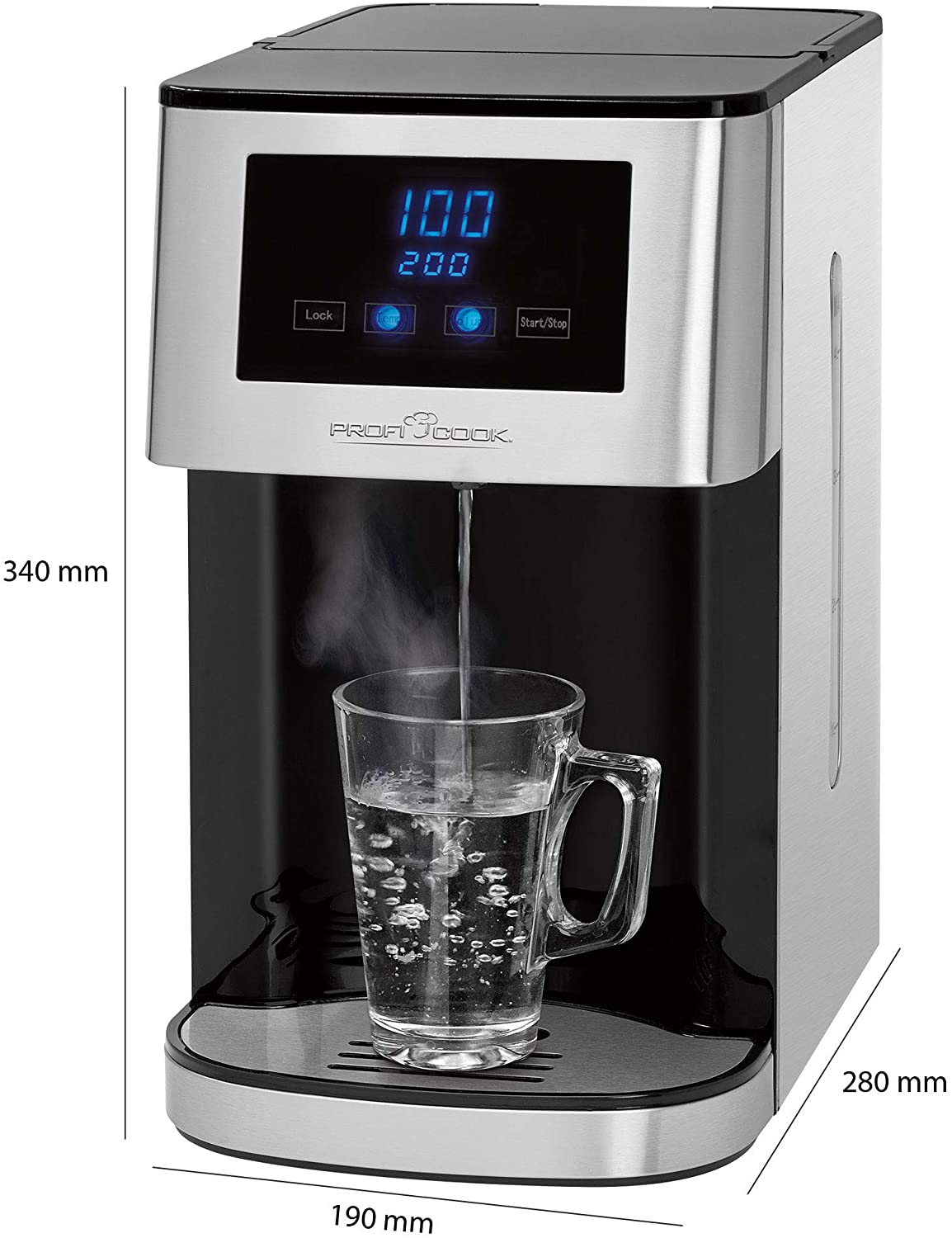PROFI COOK PC-HWS1145 – Distributeur/Fontaine à eau chaude – 100 °C en environ 3 secondes – 5 niveaux de température – jusqu’à 4 litres – Commandes tactiles – 2600 Watts – Couleur Argent et Noir