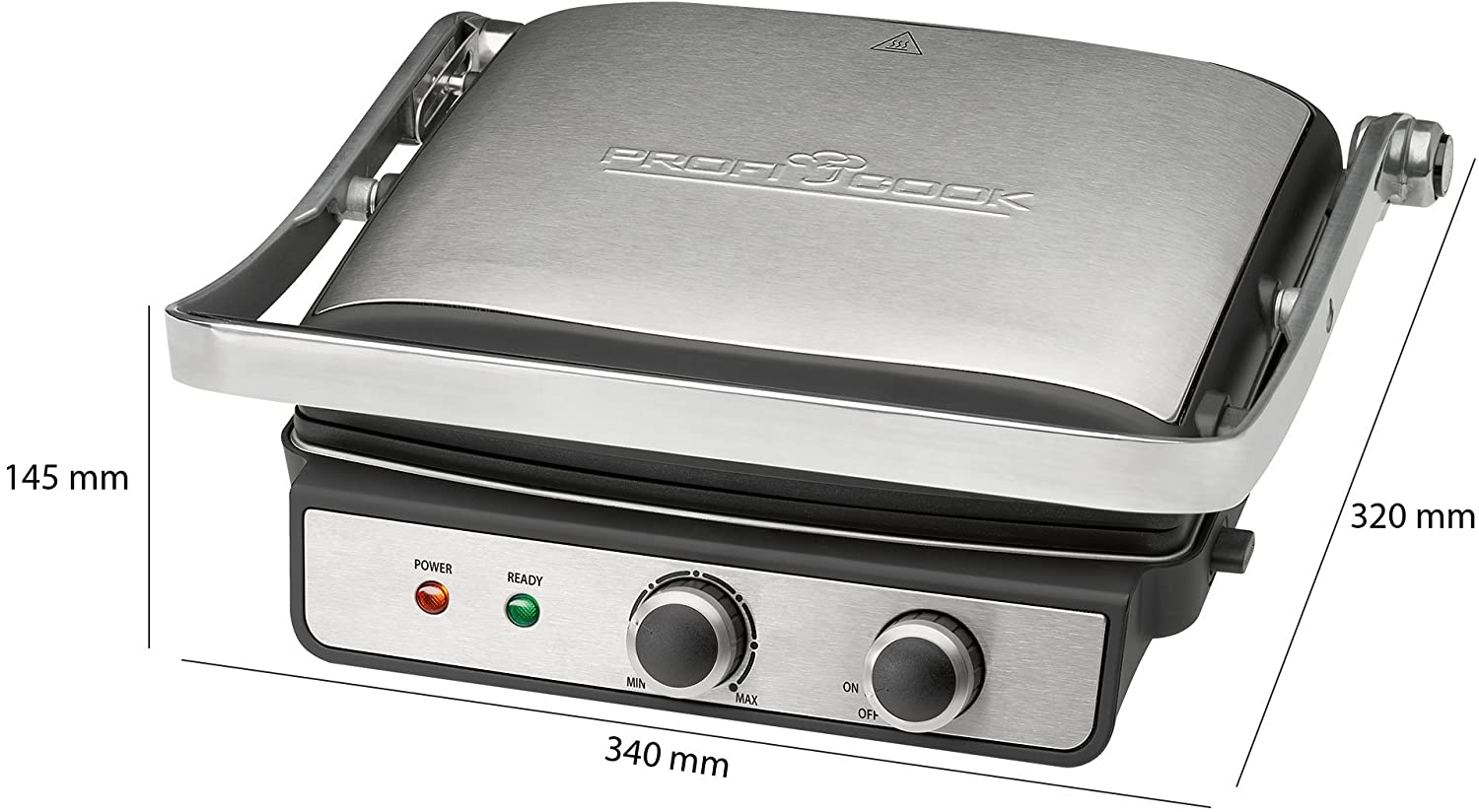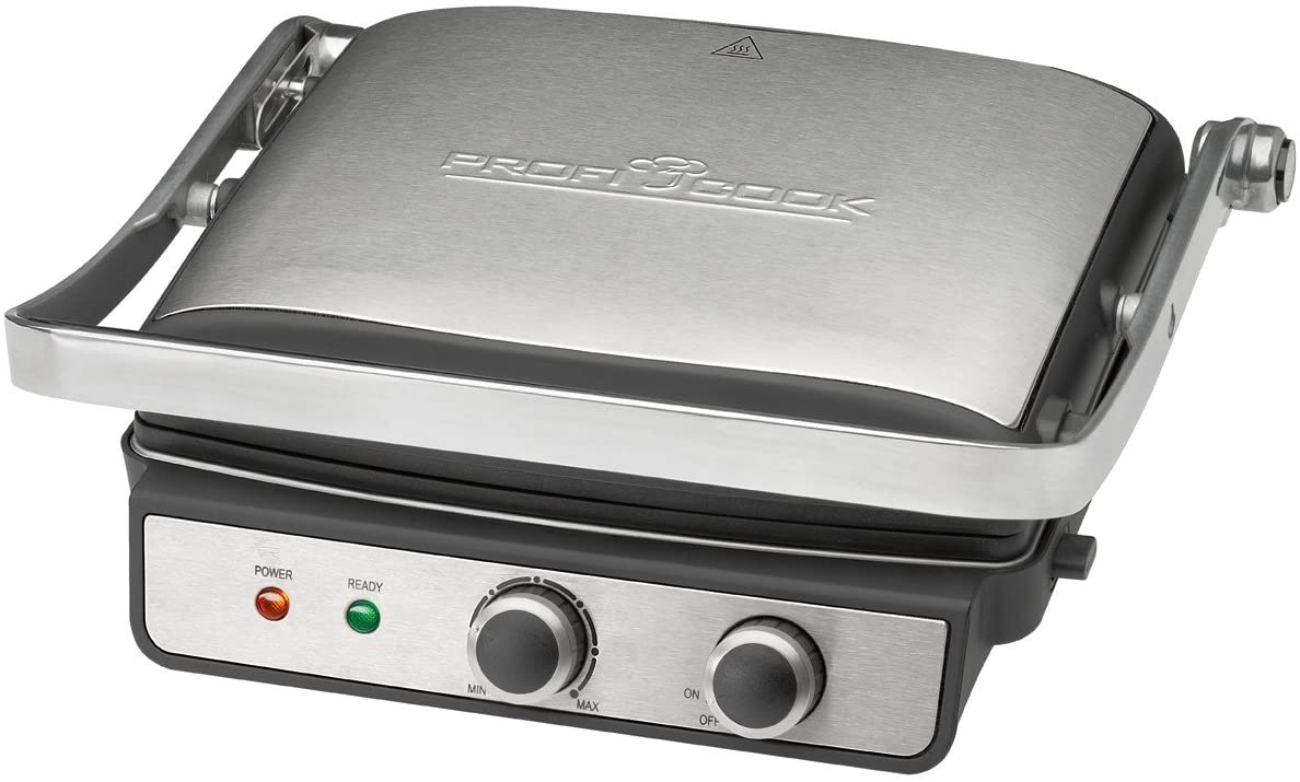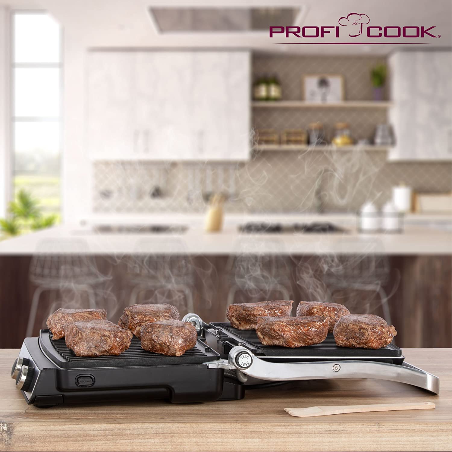 PROFI COOK PC-KG 1029 – Grill électrique – Thermostat réglable en continu – 2000 Watts – Couleur Argent – Interrupteur – Indicateur de Température