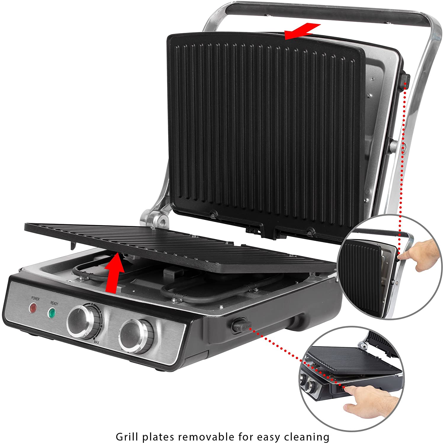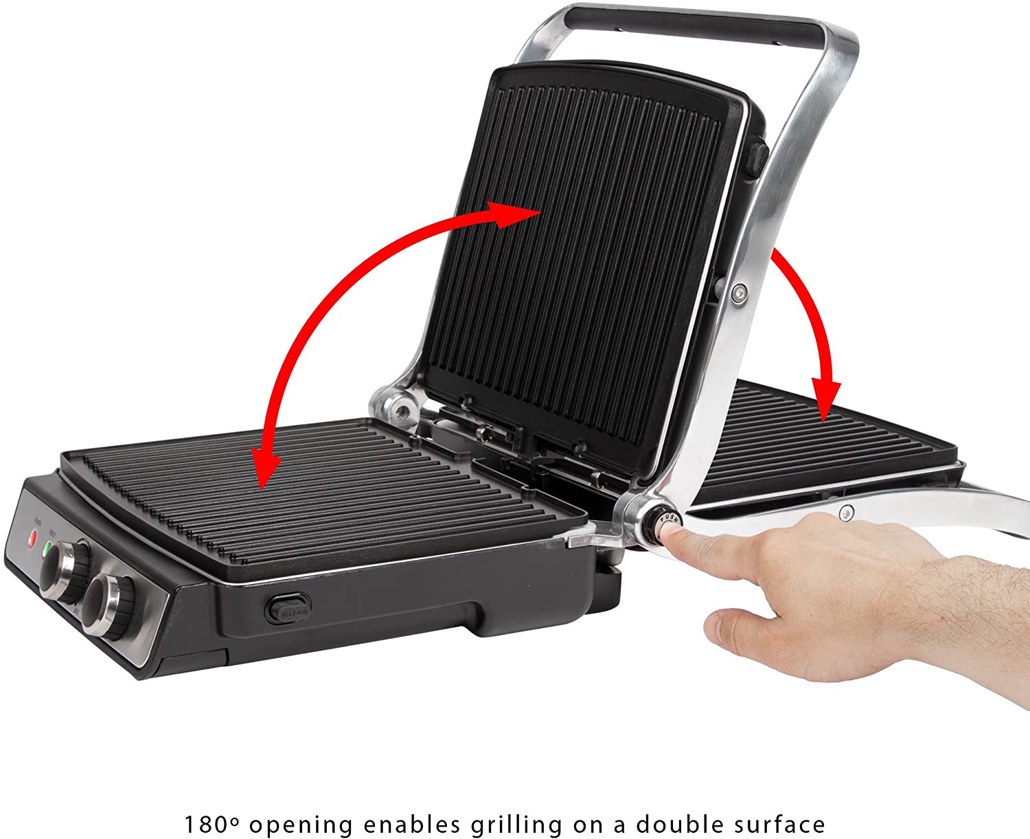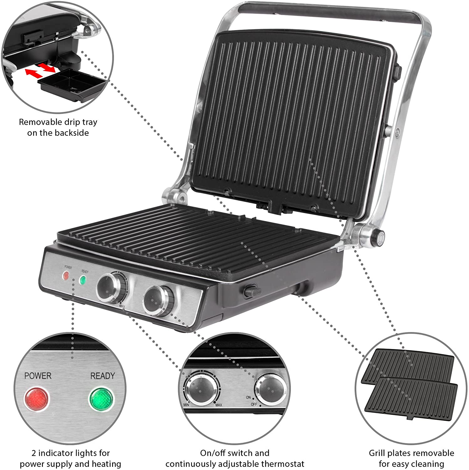PROFI COOK PC-KG 1029 – Grill électrique – Thermostat réglable en continu – 2000 Watts – Couleur Argent – Interrupteur – Indicateur de Température