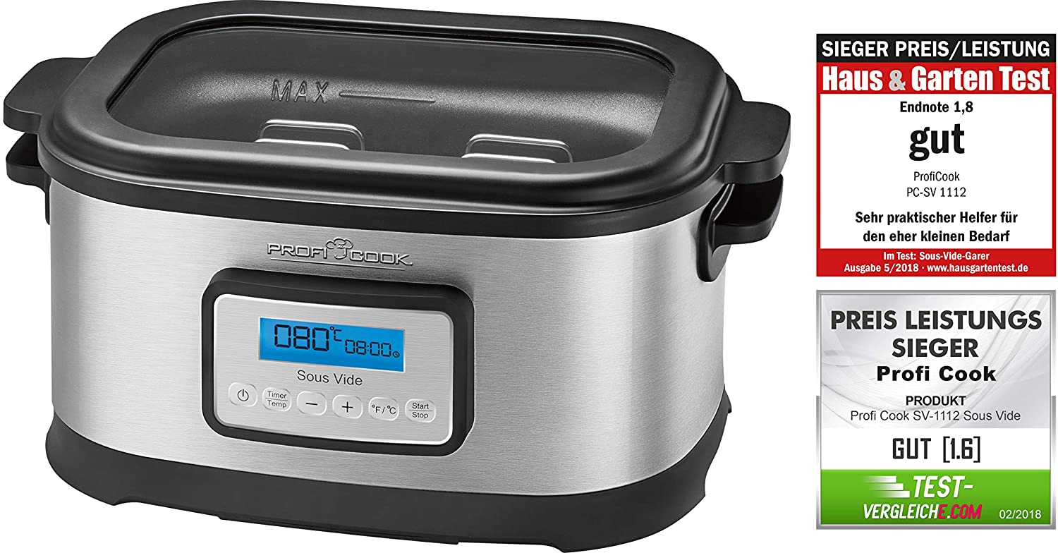 PROFI COOK PC-SV 1112 – Cocotte mijoteuse et cuiseur sous vide basse température – Capacité 8,5 Litres – 520 Watts – Couleur Argent et noir [Classe énergétique A]