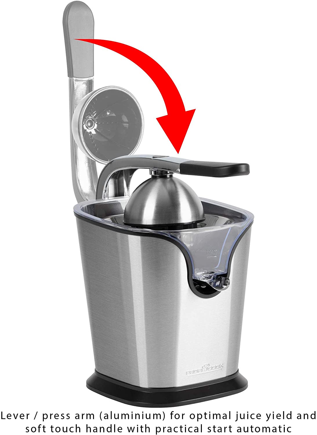 - Presse-agrumes en acier inoxydable de haute qualité – Idéal pour tous les agrumes tels que les citrons, les oranges, les pamplemousses, etc. – Levier / bras de pression en aluminium pour un rendement optimal