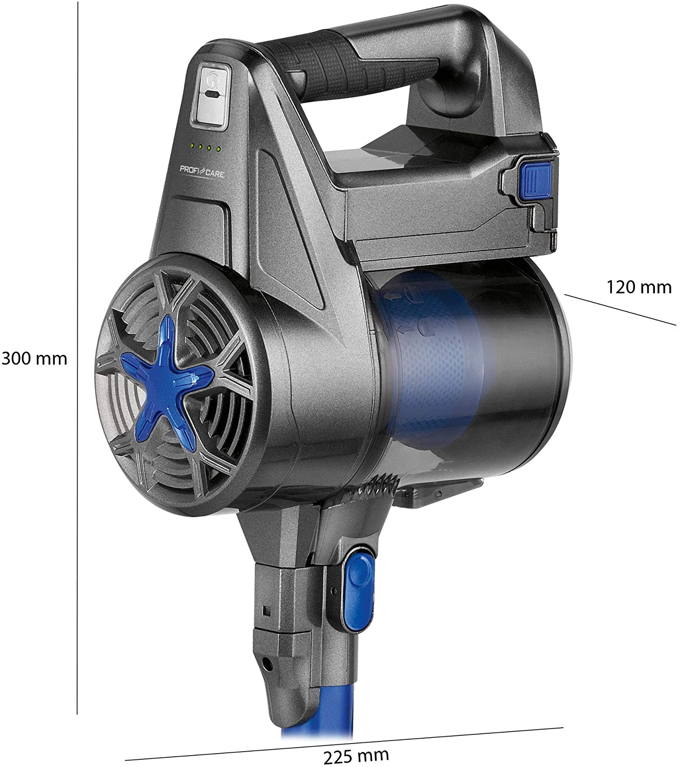 - Inclus : brosse à succion extra-longue (25 cm), brosse spéciale pour coussins et textiles, brosse de sol à rotation électrique avec éclairage Led et support mural – Chargeur de batterie: 220-240 V, 50/60 Hz – Batterie : 22,2 V, 2200 mAh