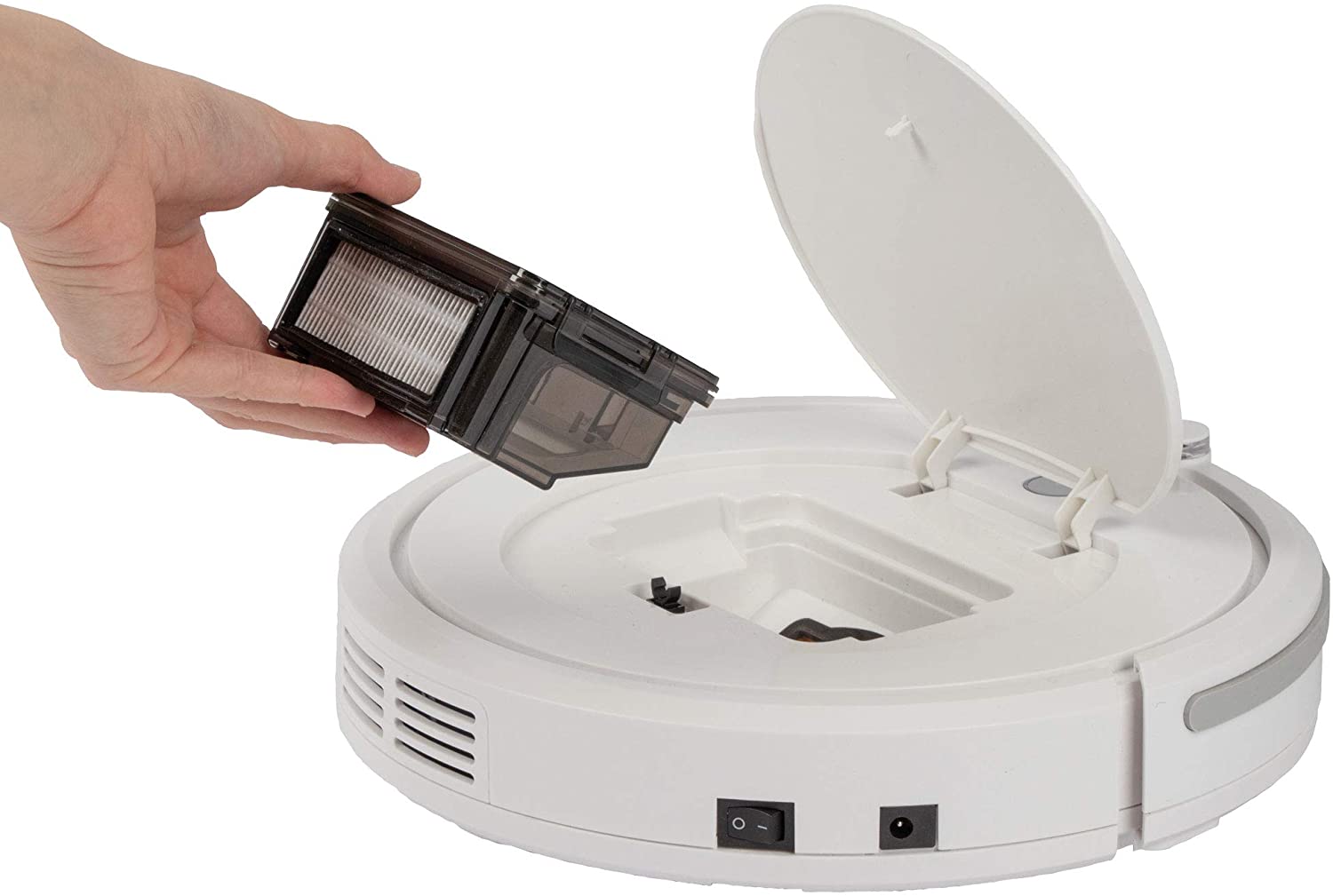 - Bac à poussière facilement amovible pour un nettoyage rapide – Inclus Filtre HEPA (filtre à air à haute efficacité) – Détection automatique d’escaliers via la technologie des capteurs (infrarouges) – Barrière de protection mécanique pour meubles et cadres de porte sensibles