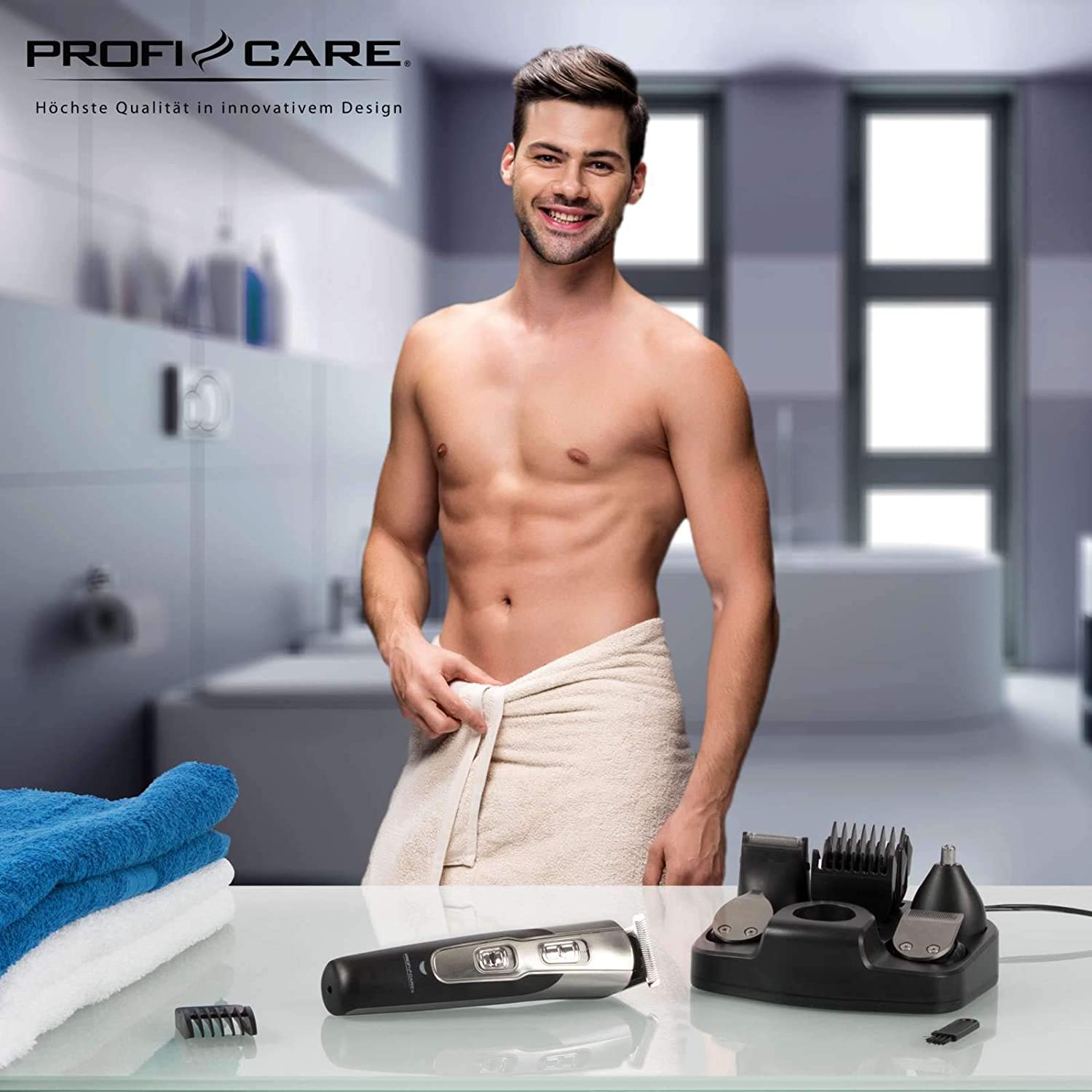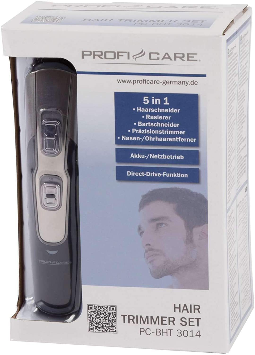 ProfiCare Set de Tondeuse Électrique 5 en 1 Cheveux/Barbe Epilateur pour Le Nez/Oreilles Noir Inclus 8 Accessoires