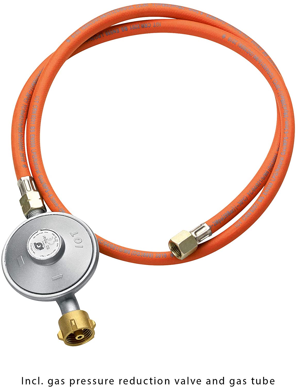 • ✔ Inclus – Contenu de la livraison : 2 grilles de cuisson en acier inoxydable (réglables en hauteur), outil de ramassage en acier inoxydable, bac récupérateur de graisse, bol de cuisson en acier inoxydable, réducteur de pression de gaz et tuyau pour l’Allemagne et l’Autriche.