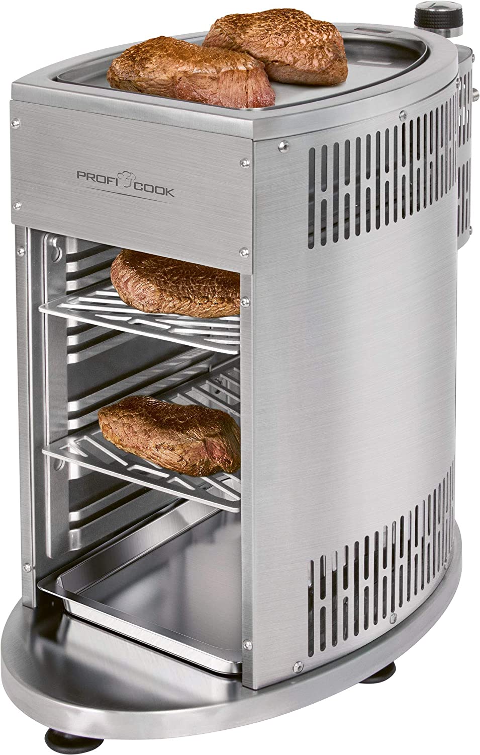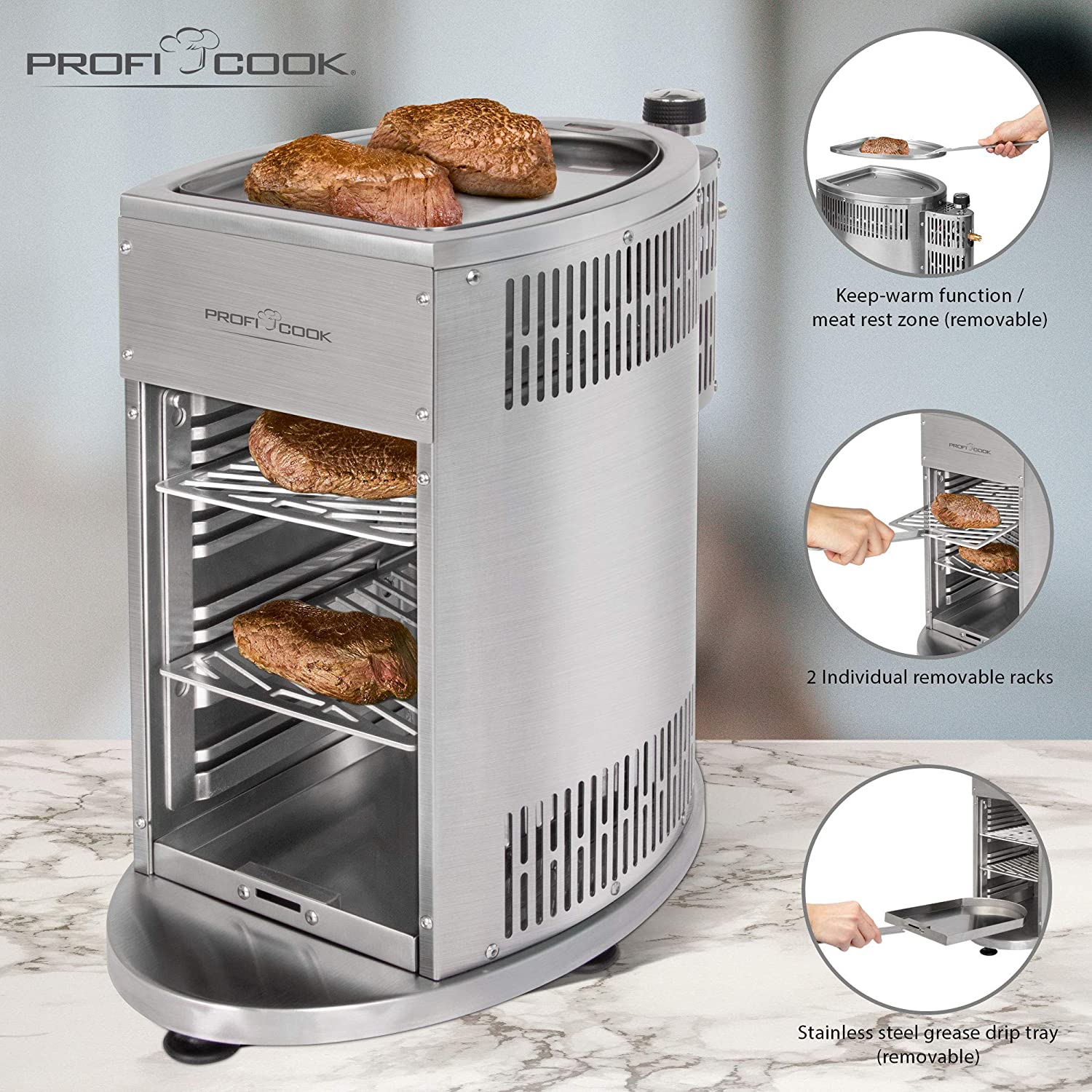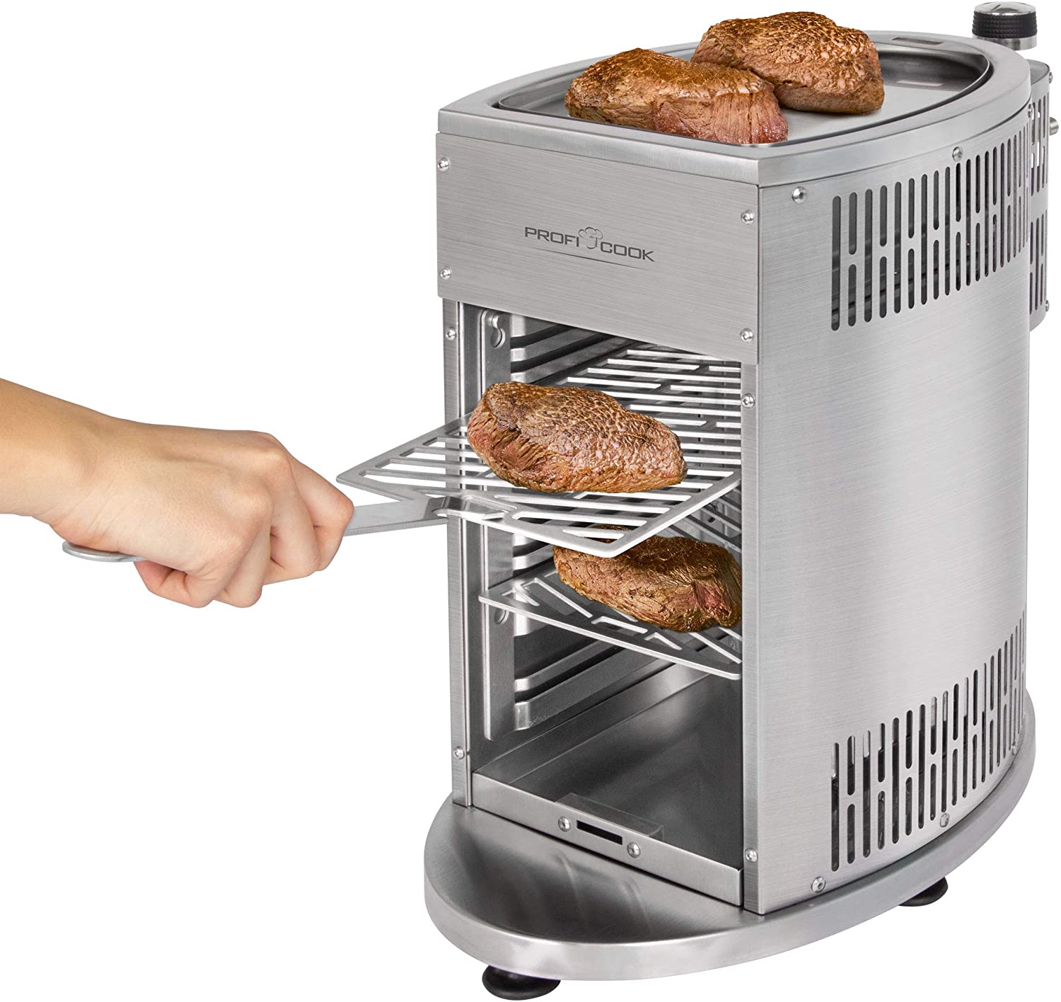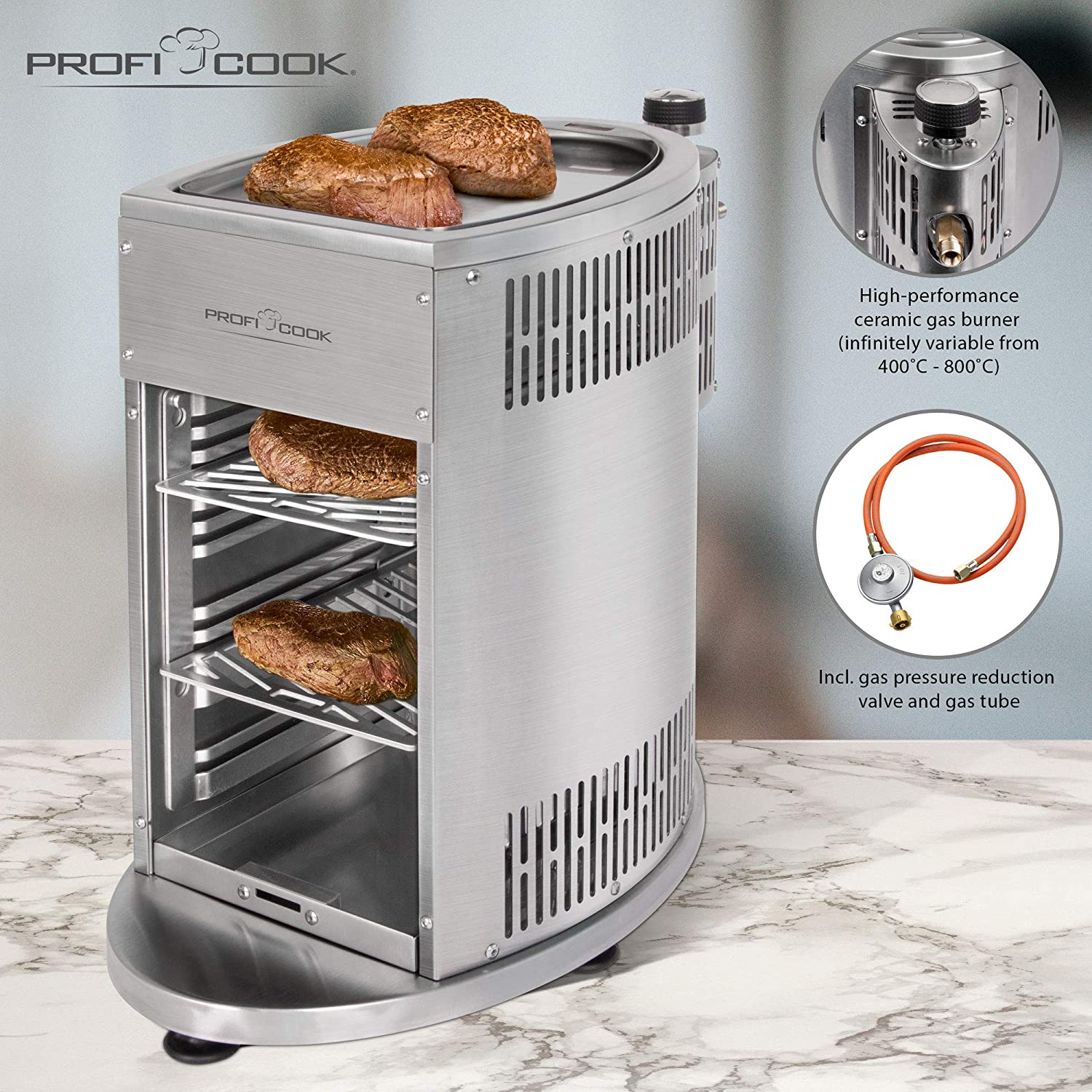 ProfiCook PC-GBS 1178 Beef Barbecue haute performance en acier inoxydable de haute qualité avec 2 grilles de cuisson, bac de récupération de graisse, réducteur de pression de gaz et tuyau pour DE + AU
