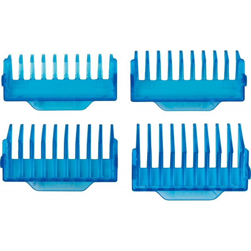 1 tête de 36 mm de largeur pour un rasage complet du corps (sec ou mouillé) avec 4 peignes clipsables (1,2,4,6 mm)
