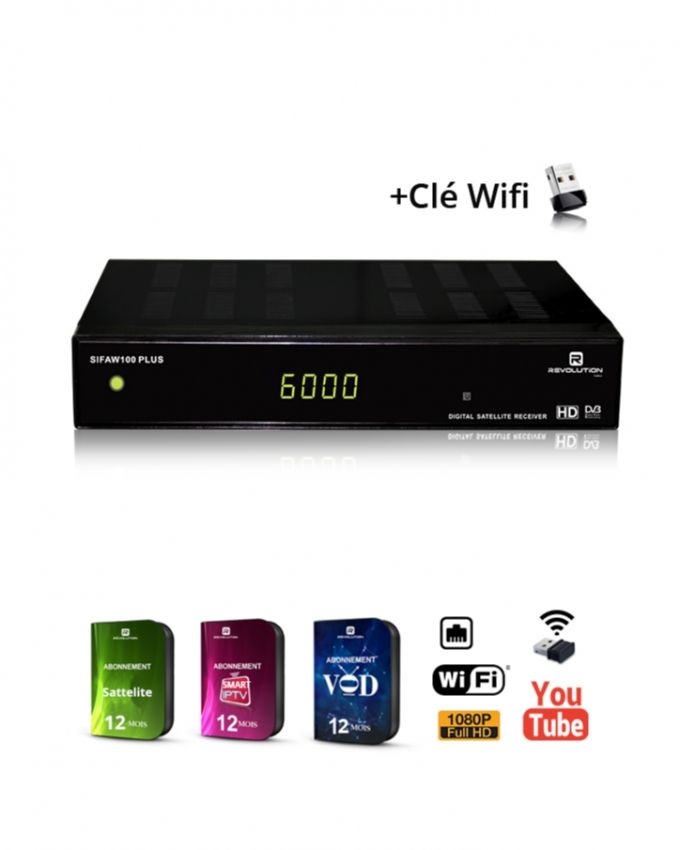 Revolution Sifaw100plus +Abonnement 12 Mois Satellite+12 Mois smart Iptv + 12Mois Vod