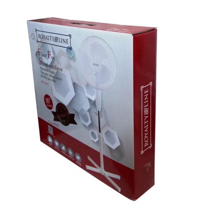 Ventilateur sur pied avec 3 vitesses Royalty line, très pratique et efficace avec ses 3 lames puissantes,très silencieux et rentable en énergie .