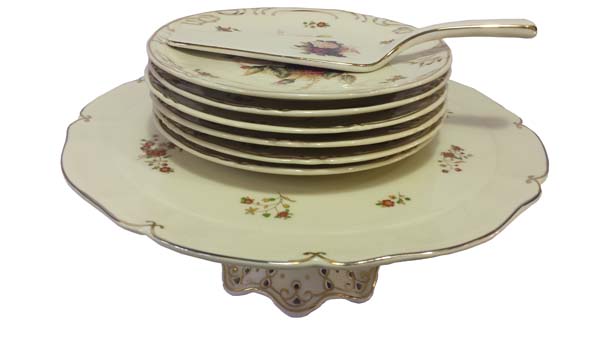Ensemble de présentoir à gateau en porcelaine beige avec 6 plats et une pelle à cake. pour completer le look chic et moderne de votre table. La couleur et le désign moderne nous fait voyager au pause thé à l’anglaise.