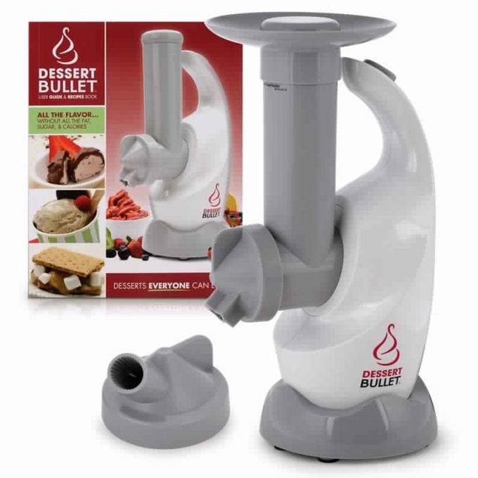 Dessert Bullet est un appareil qui vous permet de produire une crème glacée en utilisant des fruits glacés comme ingrédient essentiel en préparation de gâteaux et par conséquent, vous obtenez des glaces sans sucres et de tous produits qui causent l’obésité et les graisses ; ce qui différencie ce produit est son utilisation très facile, tout ce que vous aurez à faire c’est